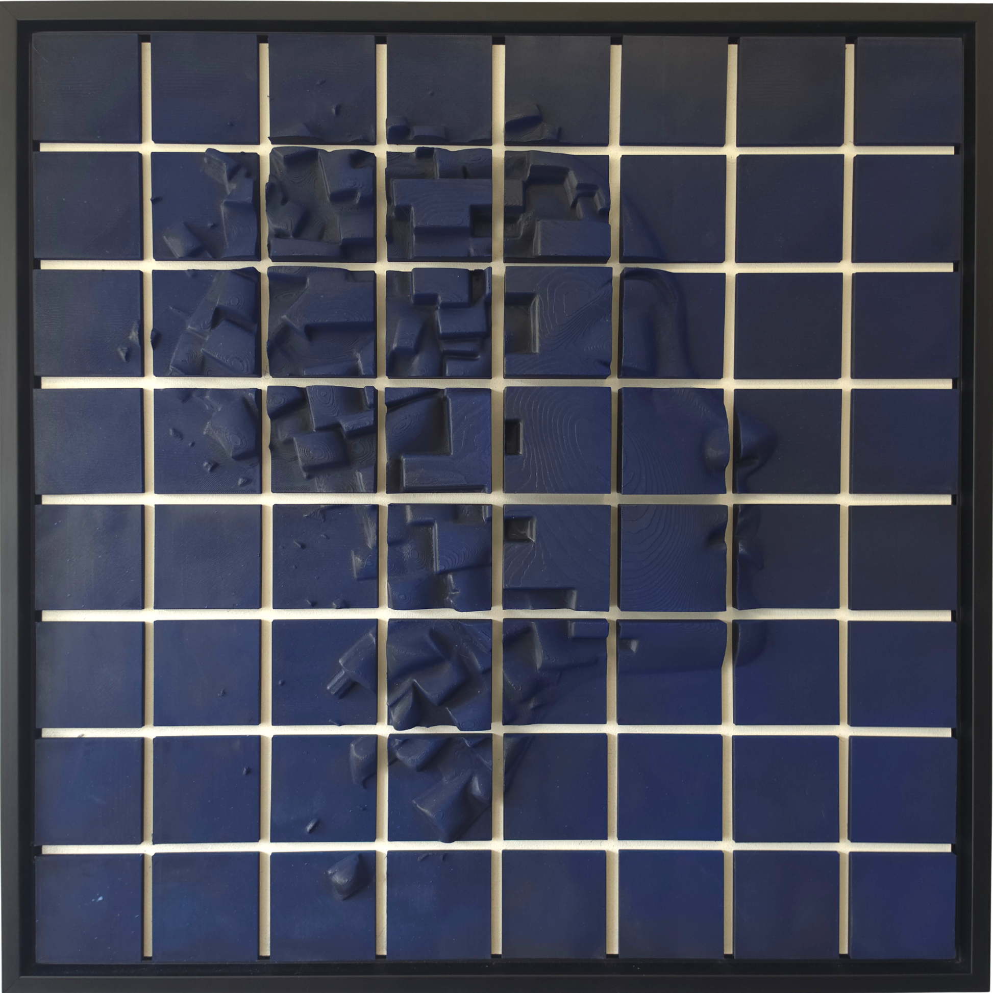 Elk segment is digitaal gebeeldhouwd en geprint met hoogwaardig filament, vervolgens zorgvuldig in elkaar gezet om zowel helderheid als verstoring te behouden en afgewerkt met acrylverf. De geometrische fragmenten zijn niet willekeurig. Ze vloeien uit de menselijke vorm als gedachten die te zwaar zijn om vast te houden. Het oppervlak is glad, maar verstoord. Kalm, maar chaotisch.
